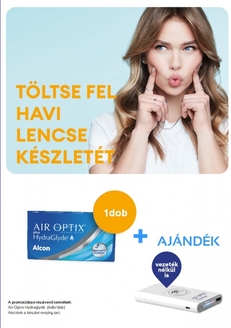 Vásároljon 1doboz Air Optix kontaktlencsét és mi ajándékba adunk mellé egy vezeték nélküli töltésre is képes powerbankot, mellyel bárhol és bármikor feltöltheti okoseszközeit!