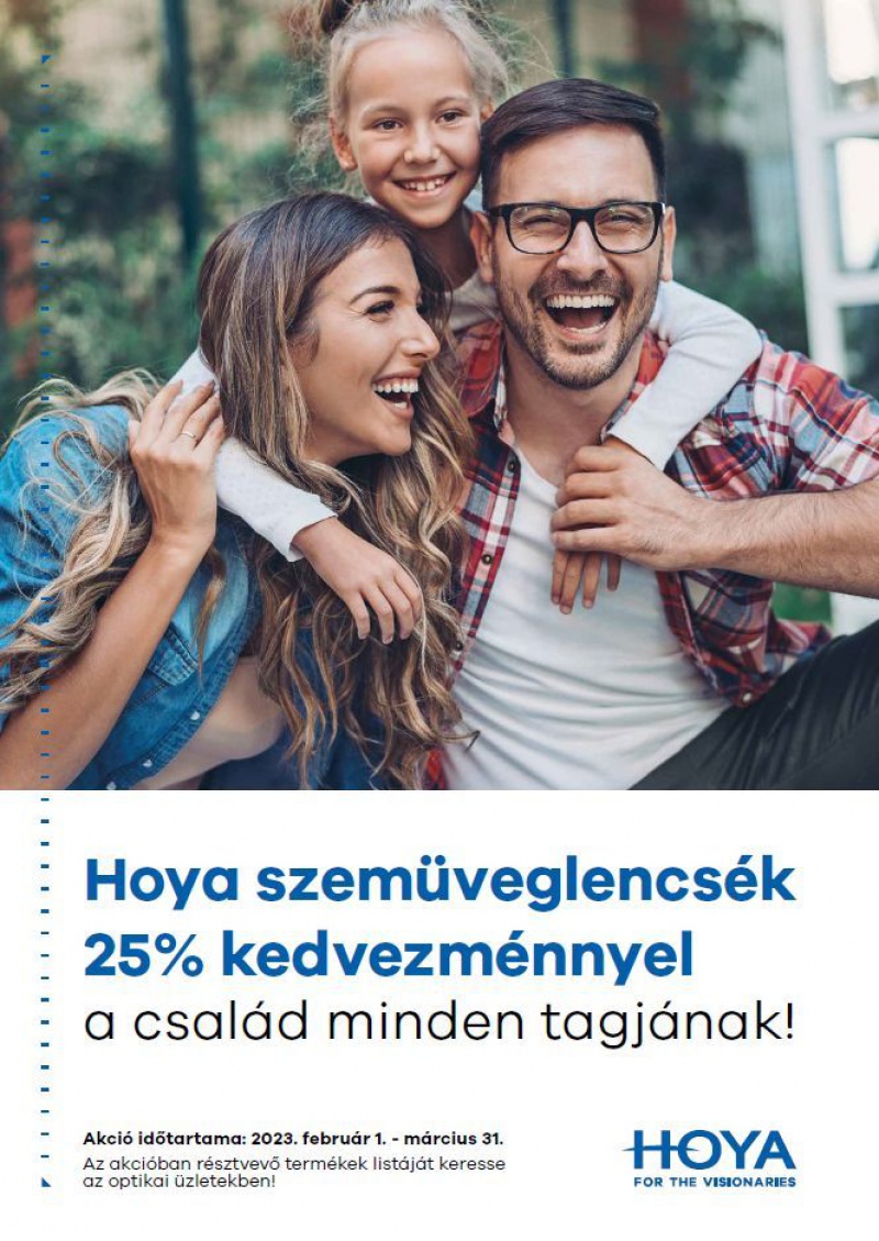 A promóció keretében az egyfókuszú Hoya lencsék mellett a gyermekek részére megalkotott Kids lencsékre, valamint a 40-45év feletti korosztály számára fejlesztett multifokális lencsékre egyaránt 25% kedvezményt biztosítunk!